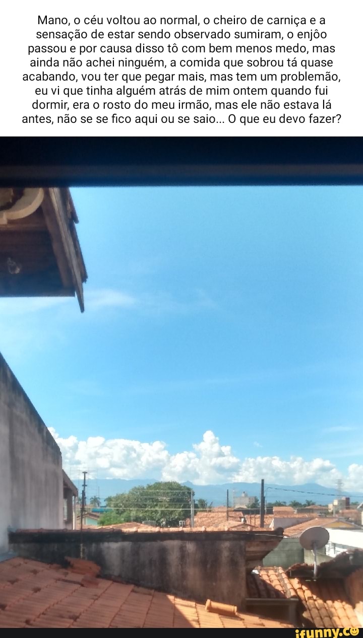 Mano, o céu voltou ao normal, o cheiro de carniça e a sensação de estar sendo observado sumiram