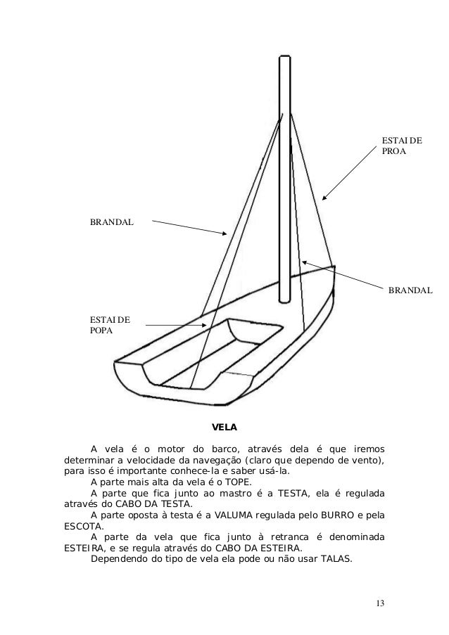 O proeiro é o tripulante responsável por ajudar a subir essas velas e organizar a descida delas. Popa - Parte de trás do veleiro, geralmente onde fica o timão e o leme, submerso. Mastro - Estrutura que sustenta as velas. Espécie de poste por onde as velas são hasteadas e baixadas. Quilha - É o contrapeso do veleiro.