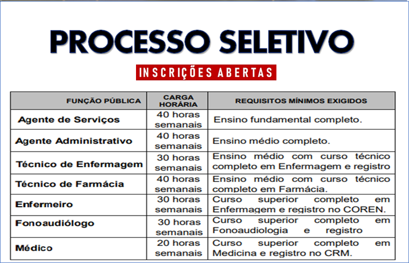 Aberto processo seletivo para todos os níveis de escolaridade. Saiba Mais